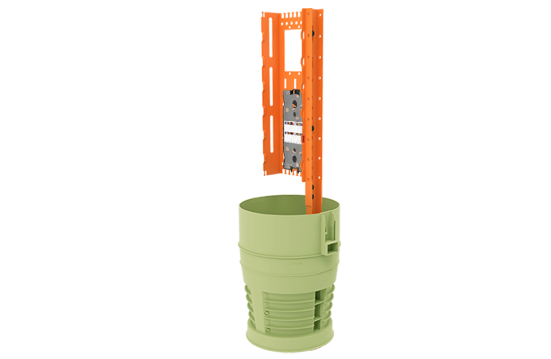 Pedestals provide a protective enclosure for outside plant (OSP), above ground splices and terminations of buried feeder fiber and customer drop fiber cables. Used for both “greenfield” and “brownfield” applications at mid-span, stub-in points, and end points. Made with non-metallic, non-conductive, injection molded plastic, Plugin Optics 10-inch Universal Distribution Pedestals provide a rugged and durable enclosure to protect against weather, dirt, flooding, fire and impact for OSP above-grade applications.